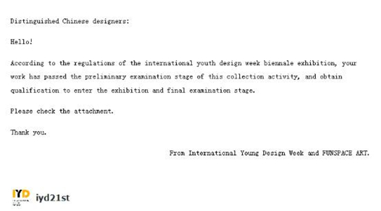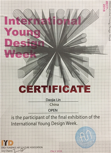 作品获颁发“2018国际青年设计周双年展”参展证书