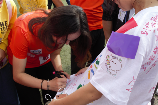 本次“彩色跑”分三组:男子组、女子一组和女子二组,比赛全程2公里,参赛者全部身着太阳成集团tyc33455团委员工会精心绘制的DIY运动T恤,在赛程站点领取彩色贴纸贴至T恤上,集齐红、蓝、绿、黄、紫五色贴纸且完成比赛的每组前十名同学获胜。比赛一开始,身着彩色T恤的同学们就离弦箭一般冲出起跑线,现场加油声此起彼伏,热闹非凡。