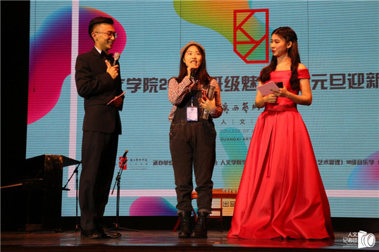 随后,16级文化产业管理班的精彩热舞《panama》拉开班级魅力秀节目表演帷幕,接下来的各个班级更是使出浑身解数,带来精彩纷呈的节目。从15级美术学(文化艺术管理)班的三人合唱《奔跑》到16级艺术史论班的朗诵《致青春》,再到17级音乐学(文化艺术管理)班的器乐合奏舞蹈《幸福所在之处》等节目,表演氛围浓郁,台下观众更是热情高涨。在阵阵掌声中晚会持续处于高潮。晚会同时也成为师生同乐的大舞台,15级音乐学(文化艺术管理)班班主任周游、16级美术学(文化艺术管理)班班主任林道佳、17级文化产业管理班班主任谭娟、17级音乐学(文化管理)班班主任宋泉、17级艺术史论班班主任王珅老师纷纷参与到各自班级的表演之中,引起了现场的阵阵喝彩。晚会中,14级毕业班员工赵俊杰惊喜现身,以一首《什么》引发全体合唱;研究生项心怡同学带来的古筝独奏节目《彝族舞曲》带领大家感受了独特的彝族风情,别有韵味。此外,主持人积极与观众互动,以现场连线幸运观众和猜字谜两种形式送出了精美礼品。晚会接近尾声时,特别嘉宾朱远航与万物攀升乐队带来特别演出,分别演唱歌曲《阿楚姑娘》、《无情的情书》和《攀升》、《北方》。本次班级魅力秀,通过结合观众投票数和现场评委嘉宾评分最终角逐出“最佳表演奖”等7项大奖。最后的颁奖仪式也标志着本次班级魅力秀的圆满结束。