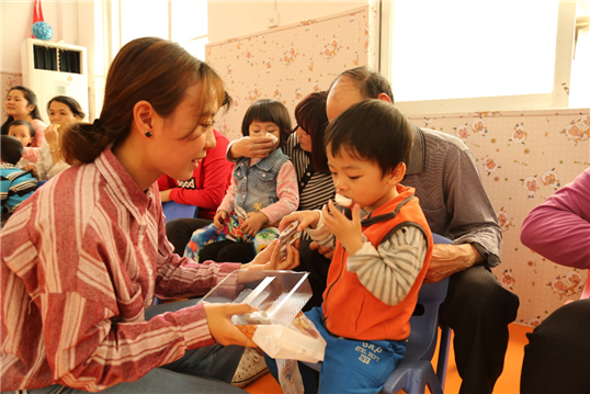 干事与孩子分享糖果