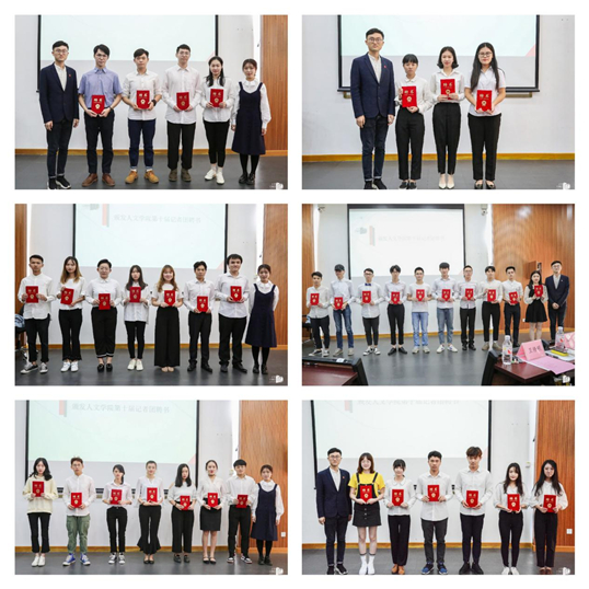 大会首先由记者团团长梁杰程同学做工作总结。他表示在过去的一年里,同学们在工作中互勉共励、相互扶持,认真完成了公司的各项工作;希望学弟学妹们在今后的工作中继续发扬记者团的精神,不断提高工作效率,明确工作职责,提升个人能力。接着,卫修明老师和王珅老师分别为第十届记者团成员颁发证书。随后大会便进入了候选人竞选演讲环节。同学们结合个人工作经验和感悟,对今后工作的展望和规划等方面作了简短有力的演讲,引来阵阵掌声。演讲结束后,由记者团16、17级全体成员进行无记名投票并由主持人公布现场投票结果。